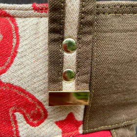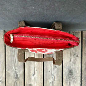 Clémence m’a contactée pour que je réutilise un de ses coupons d’écharpe à travers un modèle de sac qu’elle avait vu dans mon stock. Une belle collaboration qui a aboutit à ce sac qui mêle habilement fantaisie et sophistication.