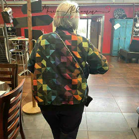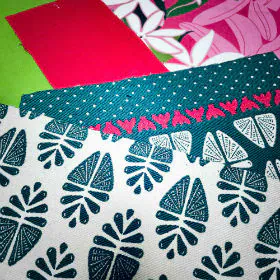 Elle m’a confié son coupon d'écharpe ainsi que des tissus chargés des souvenirs de vacances à Tahiti d’où elle l’avait ramené, et j’ai pris un grand plaisir à cette réalisation assez technique et cette alliance de couleurs éloignées de mon propre univers.