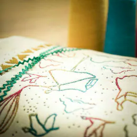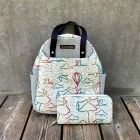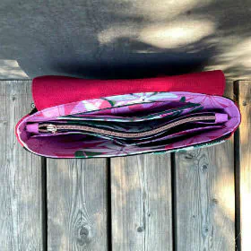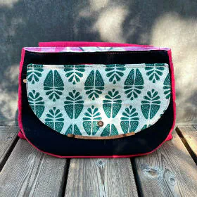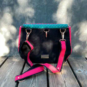 Déborah m’a contactée pour parler de son projet, et au fil des mois nous avons réussi à l’affiner : une grande besace, que l’on peut porter de plusieurs façons différentes, avec plein de rangements et un espace central divisé en deux.
