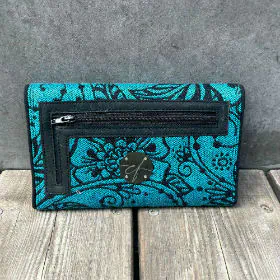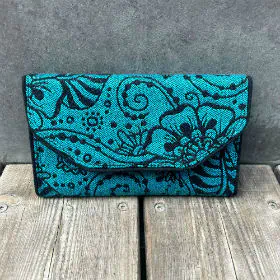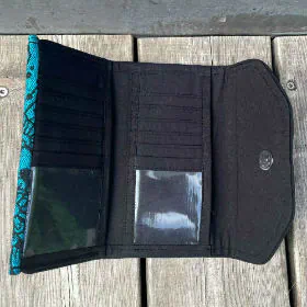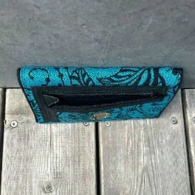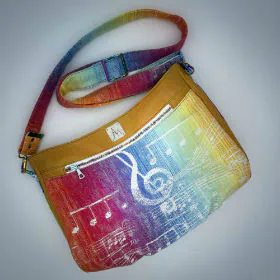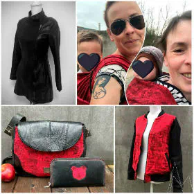 Samantha m’a confiée son écharpe de portage pour que je la transforme en plusieurs confections assorties : un sac de portage Anneaux’Affaires, un portefeuille 3 plis et une paire de chaussons bas.